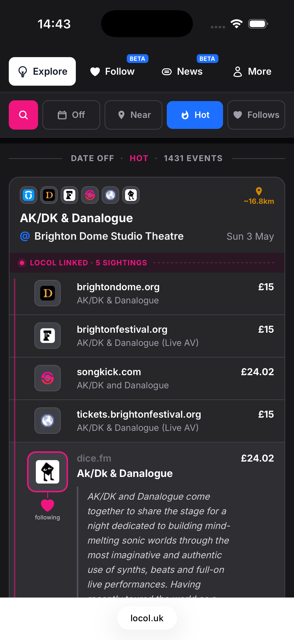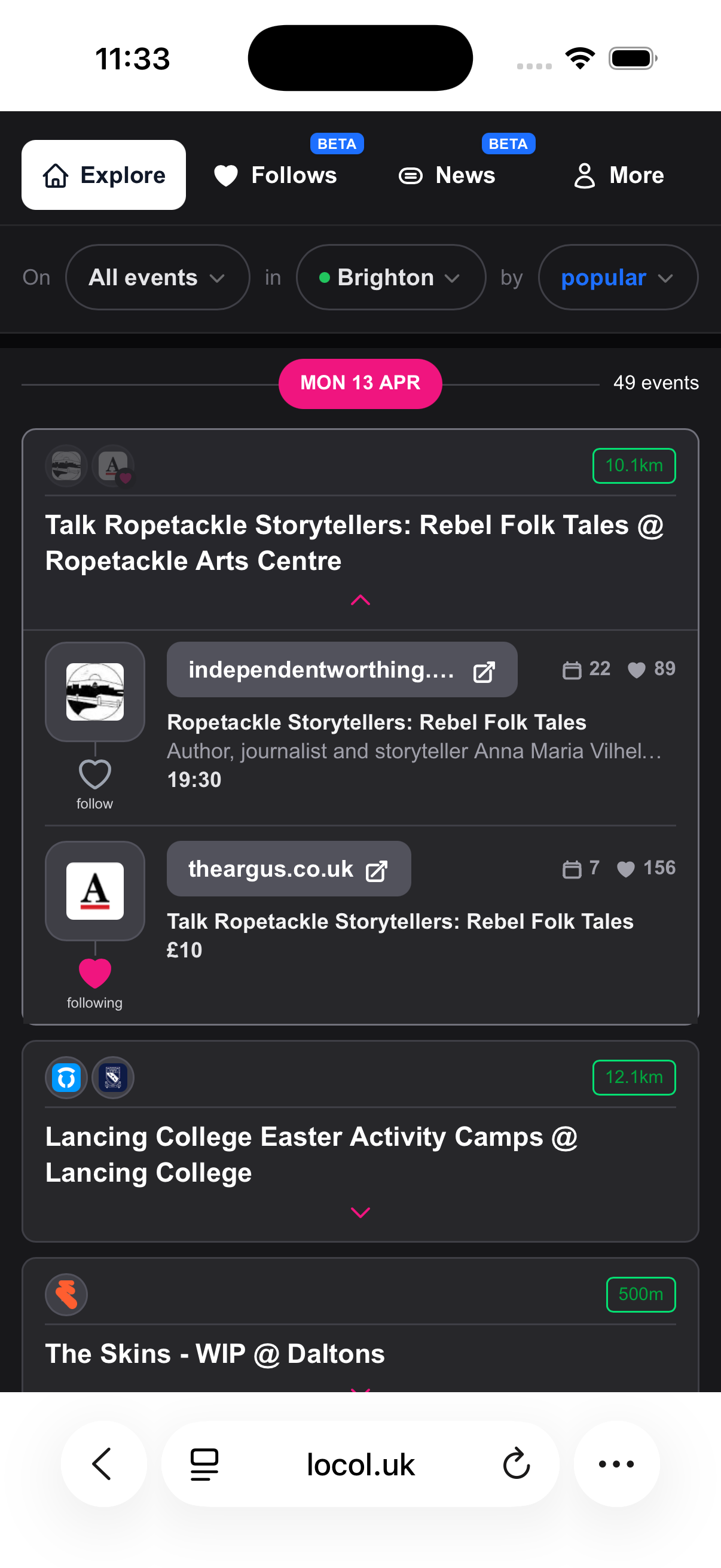 A local events discovery and marketing platform, combining festivals, pubs, businesses, concerts, venues and more! One unified feed to follow what's on and happening near you. We cover the South East – but growing fast. Stay tuned for updates.